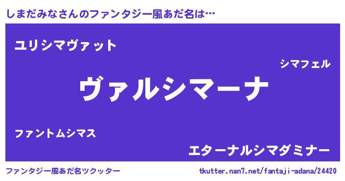 | 男性向けラノベタイトル風あだ名 | 『しまだみなに滅ぼされるだけの簡単なお仕事です』 |