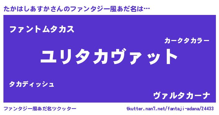 | ヘコむあだ名 | 『たかを』『たかはしあすか(爆)』 |