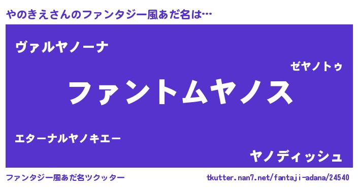 | ポケモン風あだ名 | 『ヒヤノキエ』『ヤーノイ』 |
