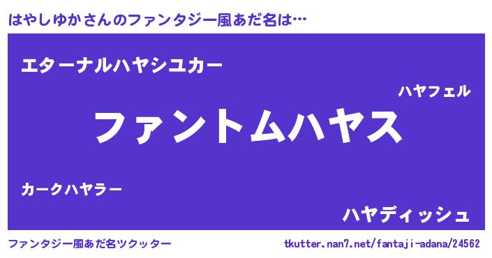 | 男性向けラノベタイトル風あだ名 | 『はやしゆかの嫁は女の子じゃないと思った?』 |