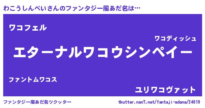 | 男性向けラノベタイトル風あだ名 | 『わこうしんぺいに滅ぼされるだけの簡単なお仕事です』 |