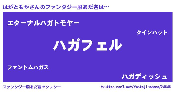 | ヒーロー風カッコイイあだ名 | 『スーパーハガトモヤ』『ネオハガトモヤ』 |