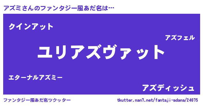 | 意味不明あだ名 | 『なめこ科アズミ属』『永久保存アズミ』 |
