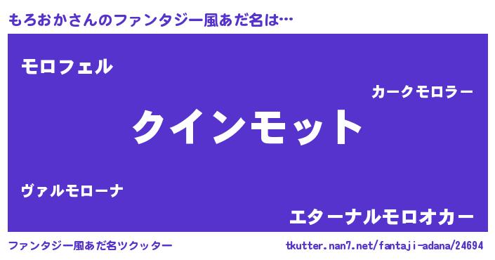 | 男性向けラノベタイトル風あだ名 | 『ノーゲーム・ノーモロオカ』 |