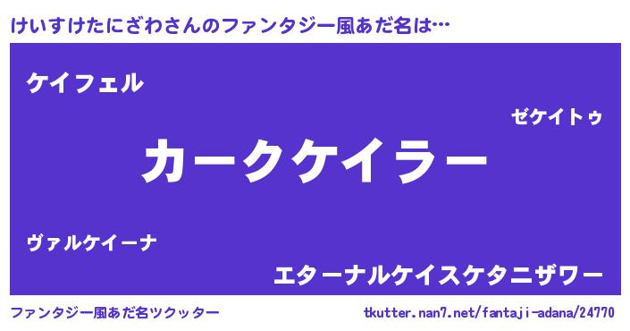 | 男性向けラノベタイトル風あだ名 | 『けいすけたにざわに滅ぼされるだけの簡単なお仕事です』 |