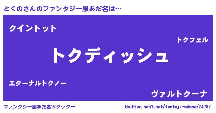 | 女子向けラノベタイトル風あだ名 | 『とくのの契約王妃』『死神とくのの再婚』 |