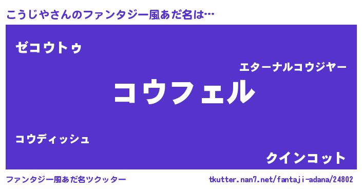 | ヒーロー風カッコイイあだ名 | 『スーパーコウジヤ』『最強戦士コウジヤ』 |