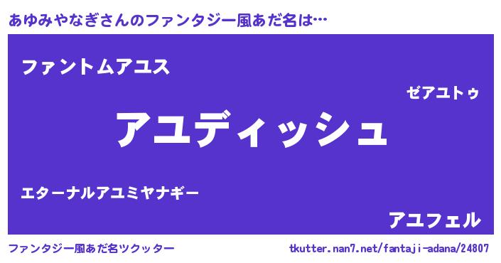 | ヒーロー風カッコイイあだ名 | 『ネオアユミヤナギ』『黄金騎士アユ』 |