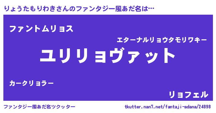 | 男性向けラノベタイトル風あだ名 | 『りょうたもりわき~年齢イコール彼女いない歴の魔法使い~』 |
