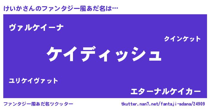 | 男性向けラノベタイトル風あだ名 | 『誰もが恐れるあのけいかが、ぼくの専属メイドになるようです。』 |