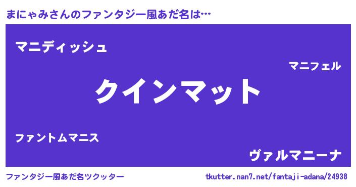 | ヒーロー風カッコイイあだ名 | 『慈愛の使者まにゃみ』『ネオマニャミ』 |