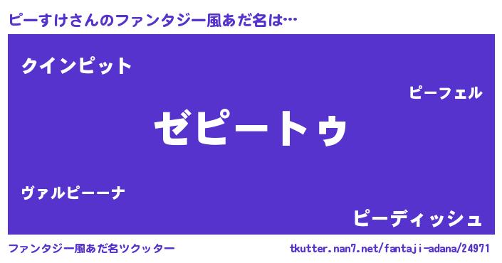 | 女子向けラノベタイトル風あだ名 | 『闇のピーすけ』『ピーすけ恋絵巻』 |