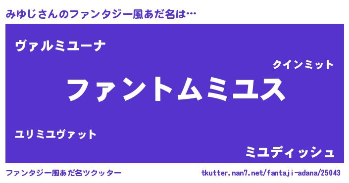 | ポケモン風あだ名 | 『ヒミユジ』『ミユゴンZ』『ミーユイ』 |