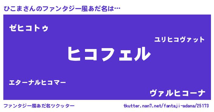 | 男性向けラノベタイトル風あだ名 | 『ひこまの憂鬱』『魔法科高校のひこま』 |