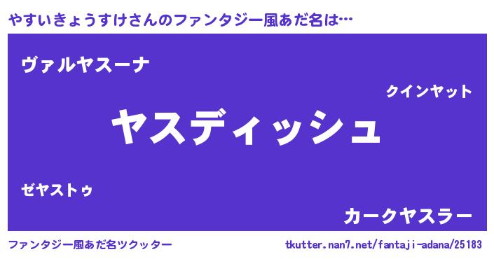 | 男性向けラノベタイトル風あだ名 | 『はたらくやすいきょうすけさま!』 |