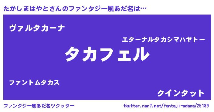 | 男性向けラノベタイトル風あだ名 | 『タカシマハヤトアートオンライン』 |