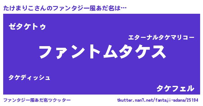 | ポケモン風あだ名 | 『タケゴンZ』『ヒタケマリコ』 |