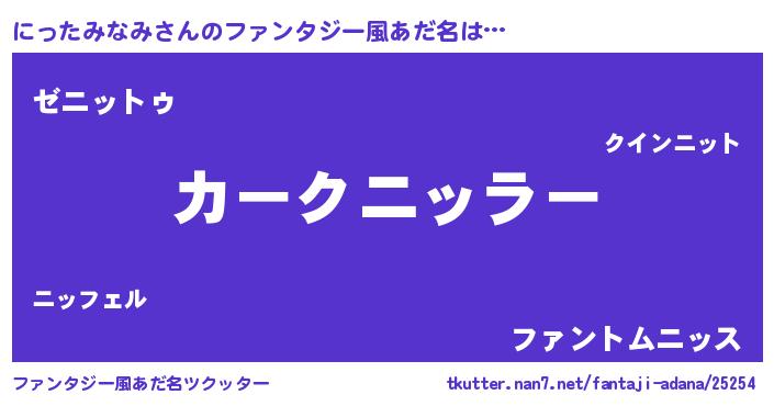 | 自動車の名前っぽいあだ名 | 『フェニーッ』『メルニッス・ニンツ』 |