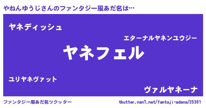 | ヒーロー風カッコイイあだ名 | 『スーパーヤネンユウジ』『仮面ヤネダー』 |