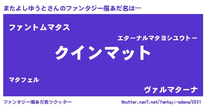 | ポケモン風あだ名 | 『マックウザ』『ヒマタヨシユウト』 |