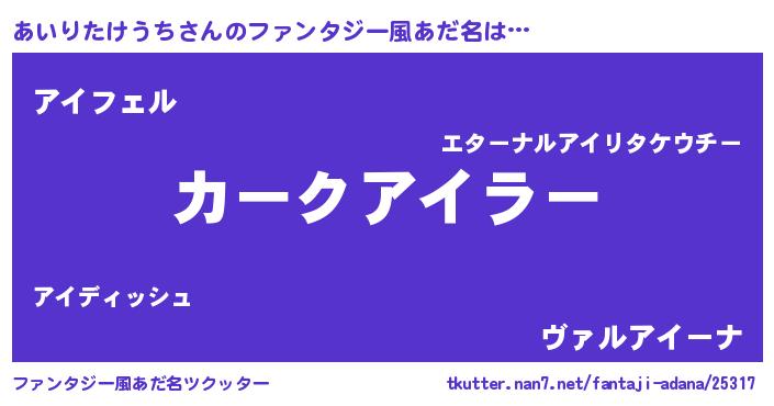 | 男性向けラノベタイトル風あだ名 | 『緋弾のアイリタケウチ』 |