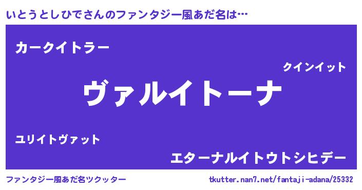 | 男性向けラノベタイトル風あだ名 | 『この素晴らしい世界にいとうとしひでを!』 |