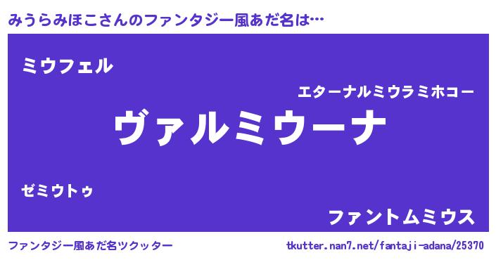 | 意味不明あだ名 | 『住所不定無職みうらみほこ(9歳)』 |