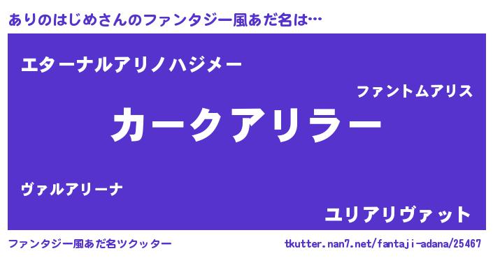 | 男性向けラノベタイトル風あだ名 | 『うちのありのはじめが世界を掌握している!』 |