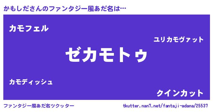 | 男性向けラノベタイトル風あだ名 | 『かもしだに滅ぼされるだけの簡単なお仕事です』 |