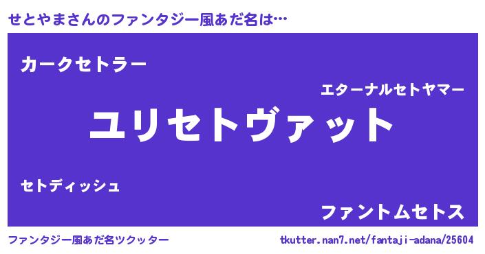 | 女子向けラノベタイトル風あだ名 | 『せとやまの玉の輿計画!』 |