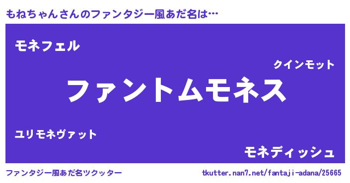 | ポケモン風あだ名 | 『ヒモネチャン』『モネチュウ』 |