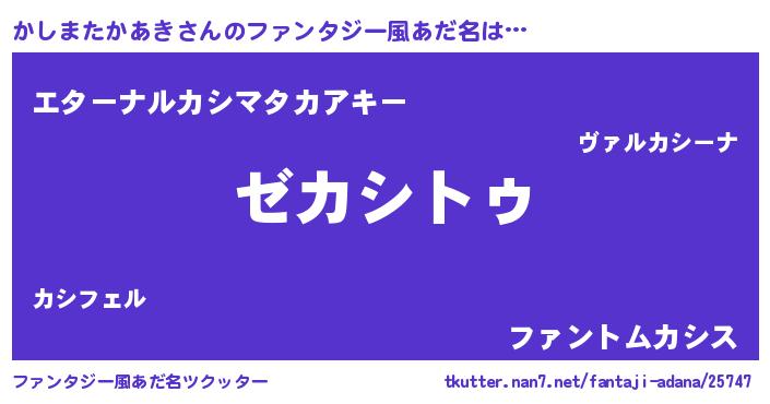 | 男性向けラノベタイトル風あだ名 | 『Re:かしまたかあきから始める異世界生活』 |