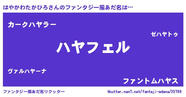 | 女子向けラノベタイトル風あだ名 | 『(仮)はやかわたかひろのやんごとなき事情』 |