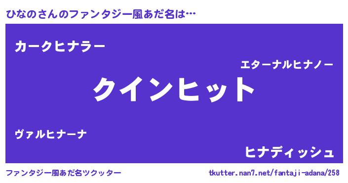 | 男性向けラノベタイトル風あだ名 | 『ノーゲーム・ノーヒナノ』 |
