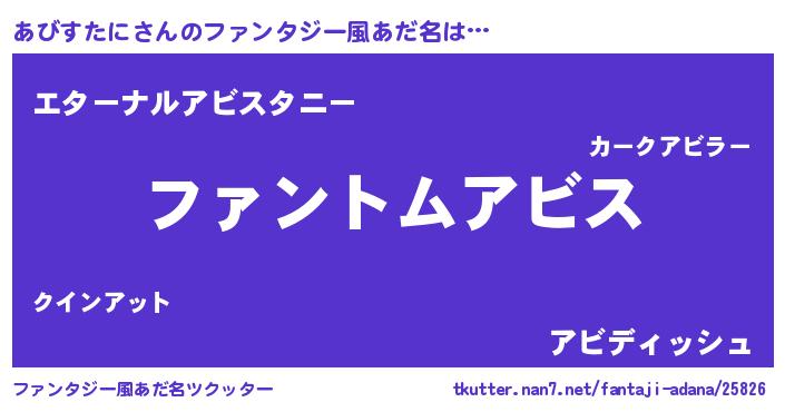 | 男性向けラノベタイトル風あだ名 | 『あびすたにの嫁は女の子じゃないと思った?』 |