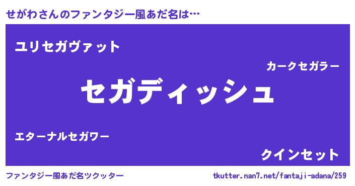 | 可愛いあだ名 | 『せがわママ』『せがぷりん』 |
