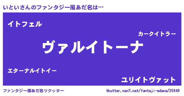 | 男性向けラノベタイトル風あだ名 | 『この素晴らしい世界にいといを!』 |
