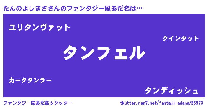 | 男性向けラノベタイトル風あだ名 | 『タンノヨシマサアートオンライン』 |
