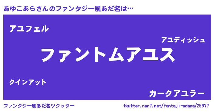 | 男性向けラノベタイトル風あだ名 | 『ダンジョンにあゆこあらを求めるのは間違っているだろうか』 |