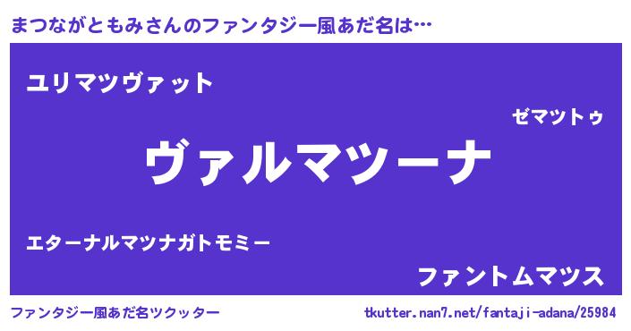 | 男性向けラノベタイトル風あだ名 | 『魔弾の王とまつながともみ』 |