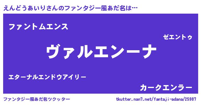 | 男性向けラノベタイトル風あだ名 | 『魔弾の王とえんどうあいり』 |