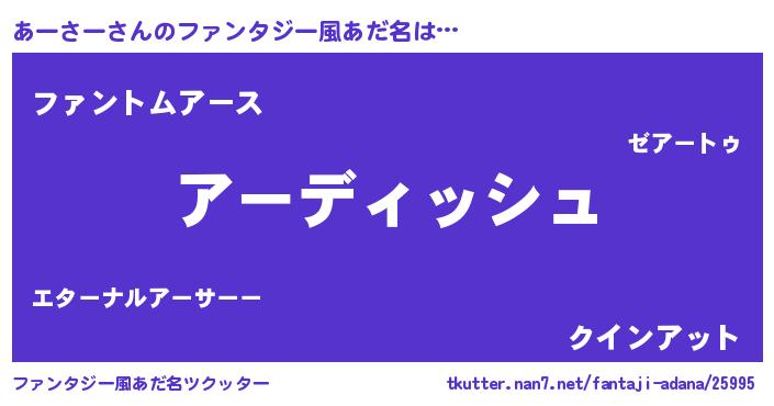 | 女子向けラノベタイトル風あだ名 | 『あーさーの契約王妃』『あーさー恋絵巻』 |