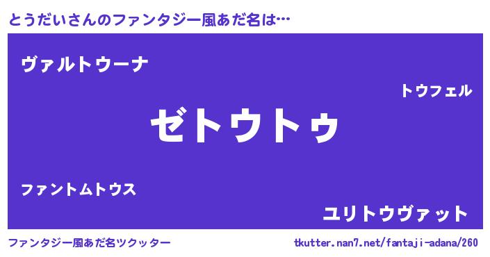 | ポケモン風あだ名 | 『トウセウス』『トーウイ』 |