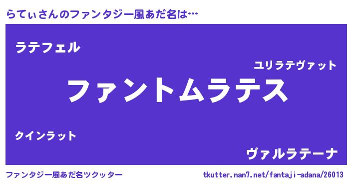 | 胡散臭い通販商品みたいなあだ名 | 『伝統あるサプリメント…その名も「らてぃ」』 |