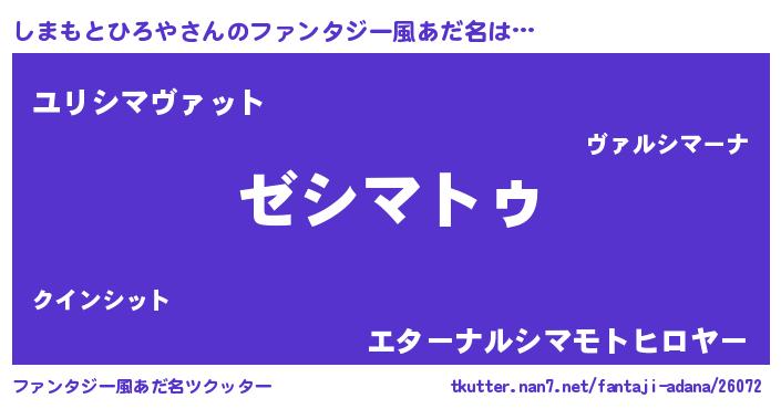 | 男性向けラノベタイトル風あだ名 | 『しまもとひろやに滅ぼされるだけの簡単なお仕事です』 |