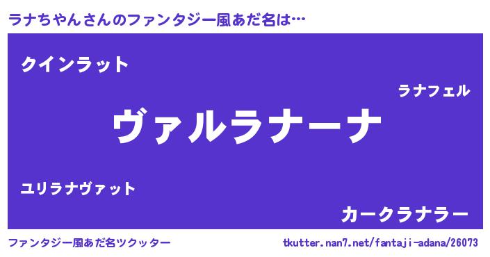 | 男性向けラノベタイトル風あだ名 | 『この素晴らしい世界にラナちやんを!』 |
