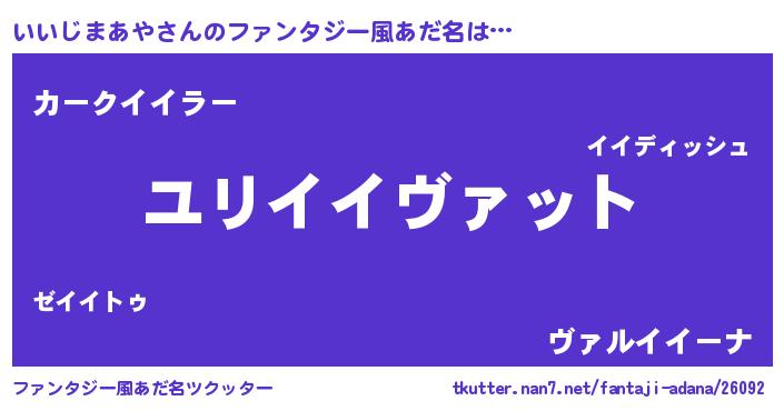 | 女子向けラノベタイトル風あだ名 | 『いいじまあやの玉の輿計画!』 |