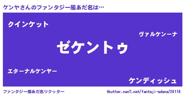 | 男性向けラノベタイトル風あだ名 | 『ケンヤに滅ぼされるだけの簡単なお仕事です』 |