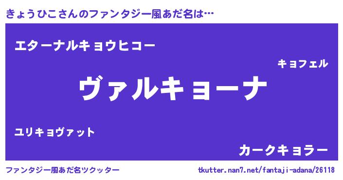 | 意味不明あだ名 | 『住所不定無職きょうひこ(8歳)』 |