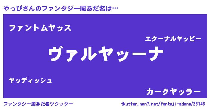 | 男性向けラノベタイトル風あだ名 | 『魔弾の王とやっぴ』 |